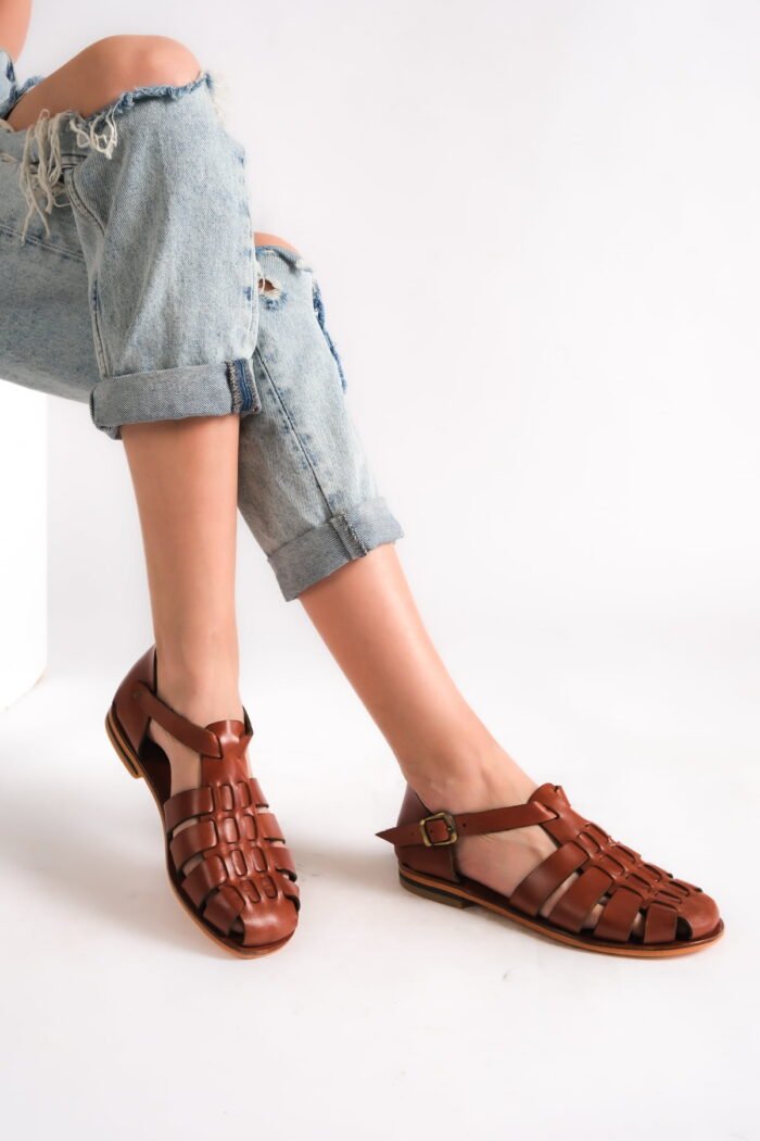 Bargilya Hakiki Deri Kadın Düz Sandalet